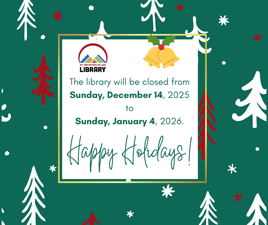 The library will be closed from Sunday, December 14, 2025 through Sunday, January 4, 2026. We wish you a wonderful holiday season and look forward to seeing you in Winter